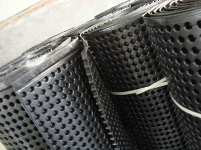 塑料排水板 塑料排水板應(yīng)用于屋面工程時可直接平鋪于防水層之上,代替?zhèn)鹘y(tǒng)屋面中防水層之上7cm厚的鋼筋混凝土剛性保護(hù)層,從而使保護(hù)層由原來的剛性變?yōu)槿嵝?,使施工更加簡便、快捷,而且從根本上減少了剛性保護(hù)層施工過程中對已完成的防水層的破壞,從整個工程角度來看,塑料排水板施工速度快無需養(yǎng)護(hù)回填土隨后跟進(jìn),大大縮短了工期,節(jié)省人力、財力、物力。